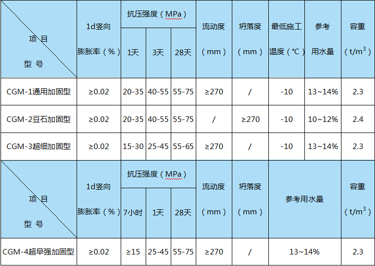 1、早强、高强:1-3天抗压强度可达30-50Mpa以上,灌浆后24小时即可紧固螺栓、开机试车。28天强度*高可达60Mpa以上。