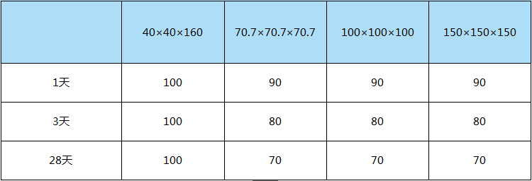 通用无收缩灌浆料各种试模尺寸间强度换算关系